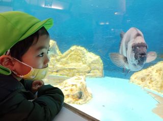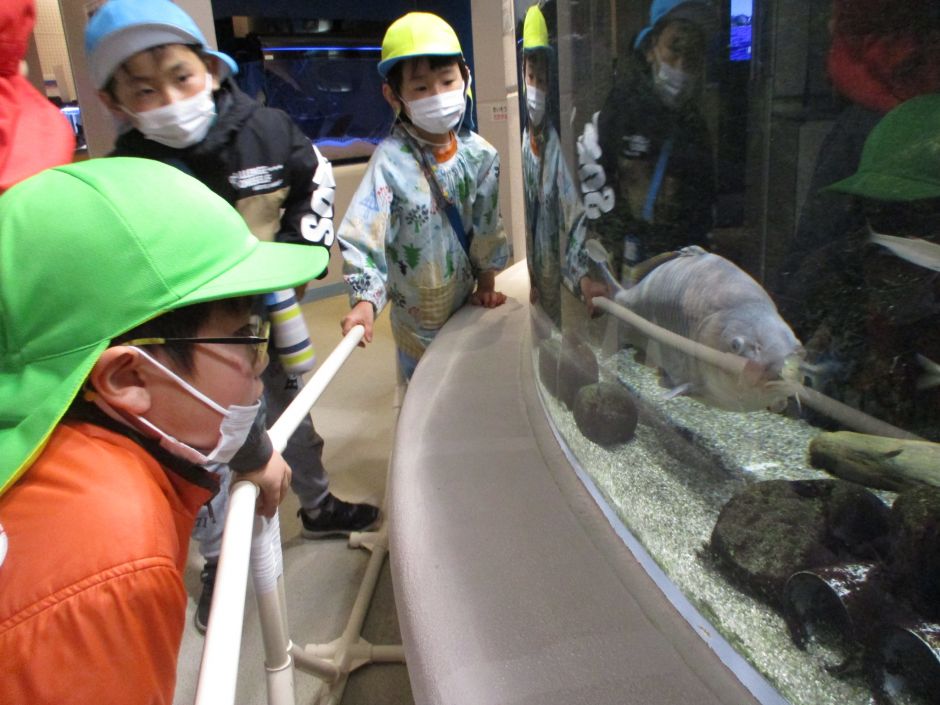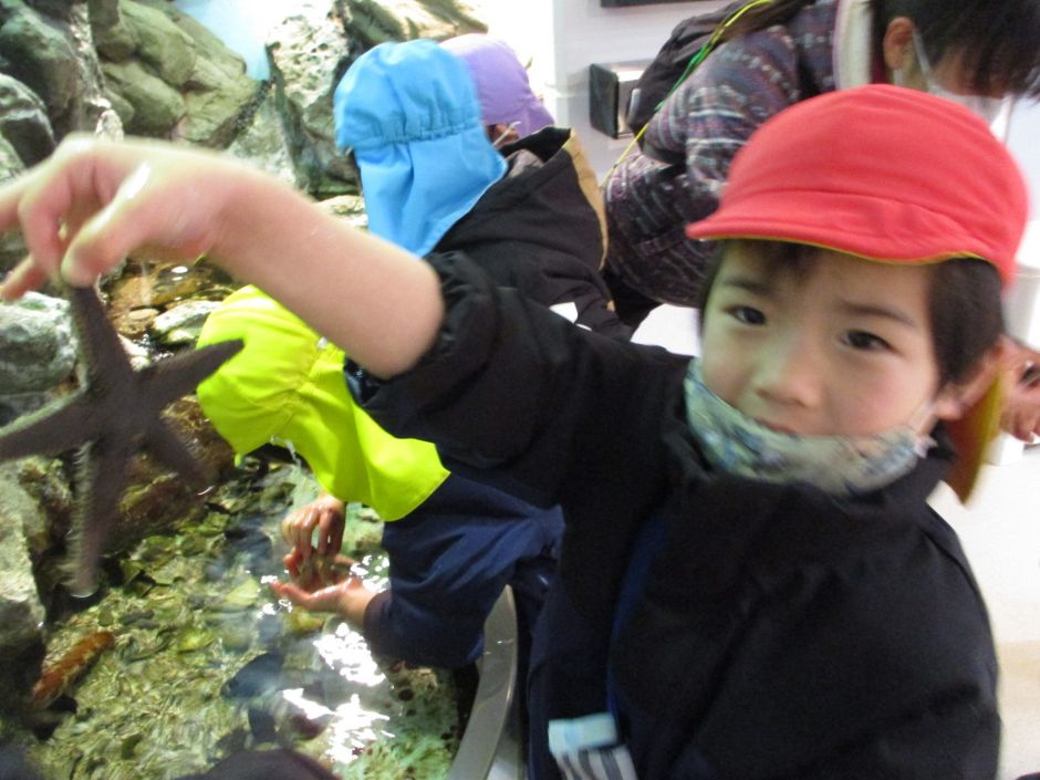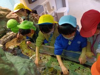 年長さんは、バスに乗って水族館にいきました。水族館では、さかながゆっくりと動いている様子をじっとみたり、タッチコーナーでは、ドキドキ!ワクワク!しながらヒトデやなまこなど手で触る体験をしました。久しぶりのお出掛けを満喫した子どもたちでした。