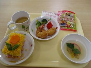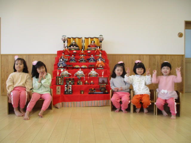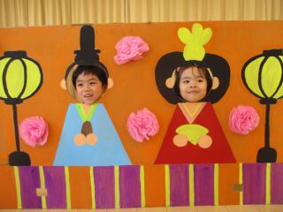 今日は「ひなまつりお祝い会」でした♪女の子たちがかわいいリボンをつけて登場すると、男の子たちも「かわいい!」と大喜びでした。みんなでひな人形のクイズや、おひなさまの顔だしパネルを楽しみました♡給食では、「おひなさま押し寿司」を食べました。今年も健康に過ごせますように☆彡