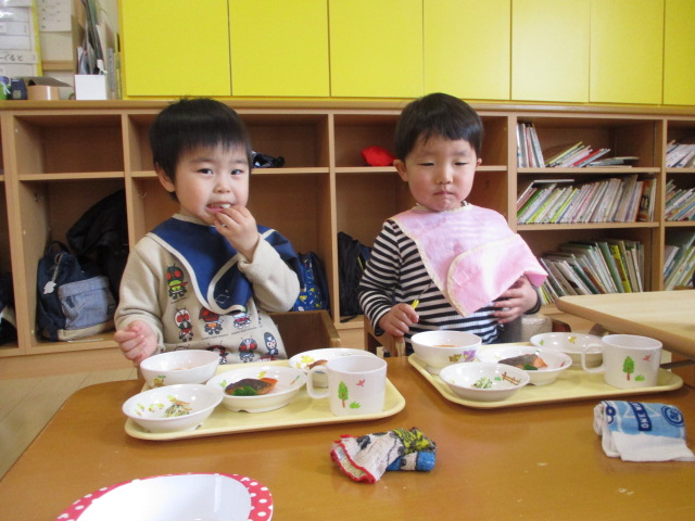 好きなおかずで食べる手がどんどん進む子どもたちでした♪