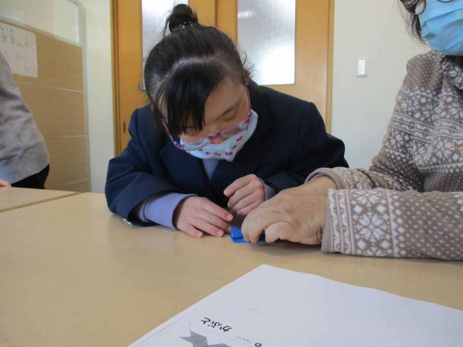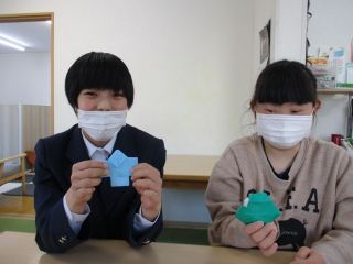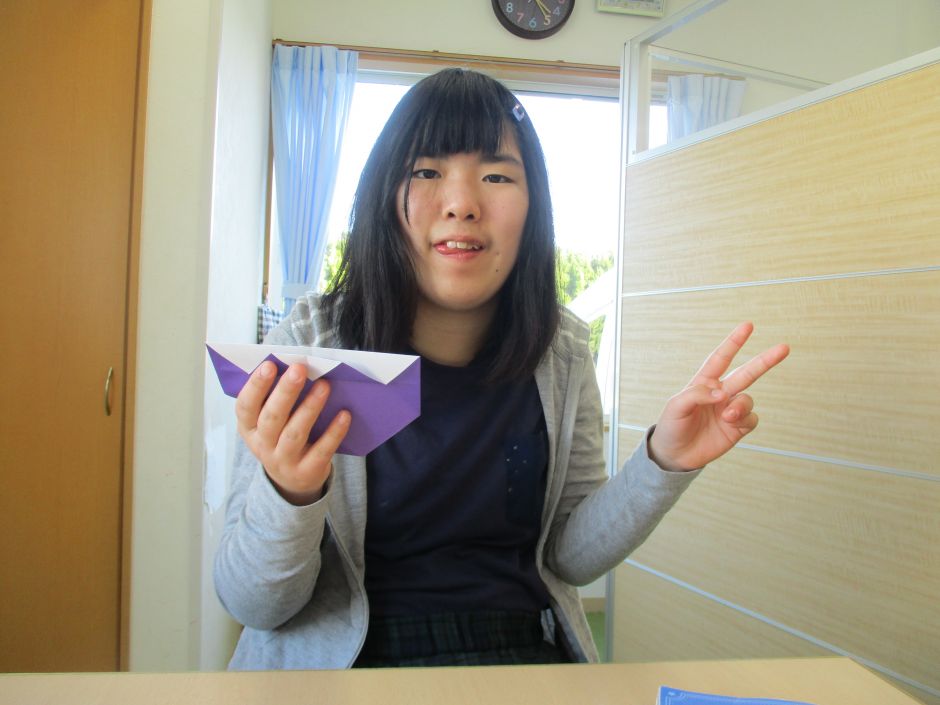 久しぶりに折り紙をしました。半分に折る、角を合わせるなど基本的な折り方のある「やっこさんやチューリップ、カブト」などを作りました。折り図を見ながら、自分でどんどん折る子、難しい所を職員に教えてもらいながら折る子など様々でした。「持って帰って家の人に見せる!」と言って、大事そうに持ち帰る姿も見られました。