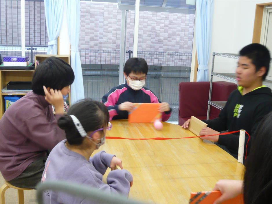 日頃は、自分で好きな活動を選択しますが、『チャレンジウィーク』になると、いつも選ばない方の活動や少し苦手な方の活動を“やってみよう”となっています。 今回の『チャレンジウィーク』は、卓上バレー(スポーツ部)と刺し子(アート部)の選択でした。自分からチャレンジする子、迷いながら決める子、好きな活動を選ぶ子など、その都度、いろいろな子どもたちの様子が見られていました。 子どもたち自身が考えたり、少し前に踏み出してみたりするチャレンジの気持ちを大事にし、関わっているところです。