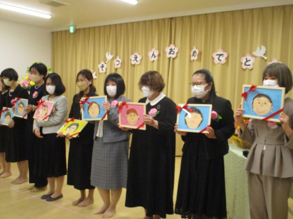 3月12日に卒園式をおこないました。14名の子どもたちとご家族そしてかぜグループの子どもたちが出席してくれました。今までで一番多い人数の卒園児です。みんな元気いっぱいの子どもたちでした。1年生になっても元気いっぱいすごしてほしいな。母子通園を頑張られたお母さん方にも絵やお手紙を贈りました。困ったことがあったらいつでもあははに来てくださいね。待っています。