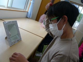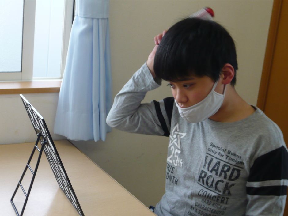 まずは、鏡で自分の顔を見たり、ブラシで髪の毛をとかすところから始めました。
