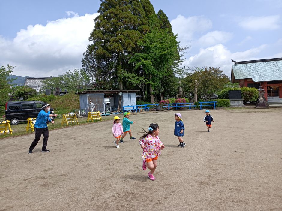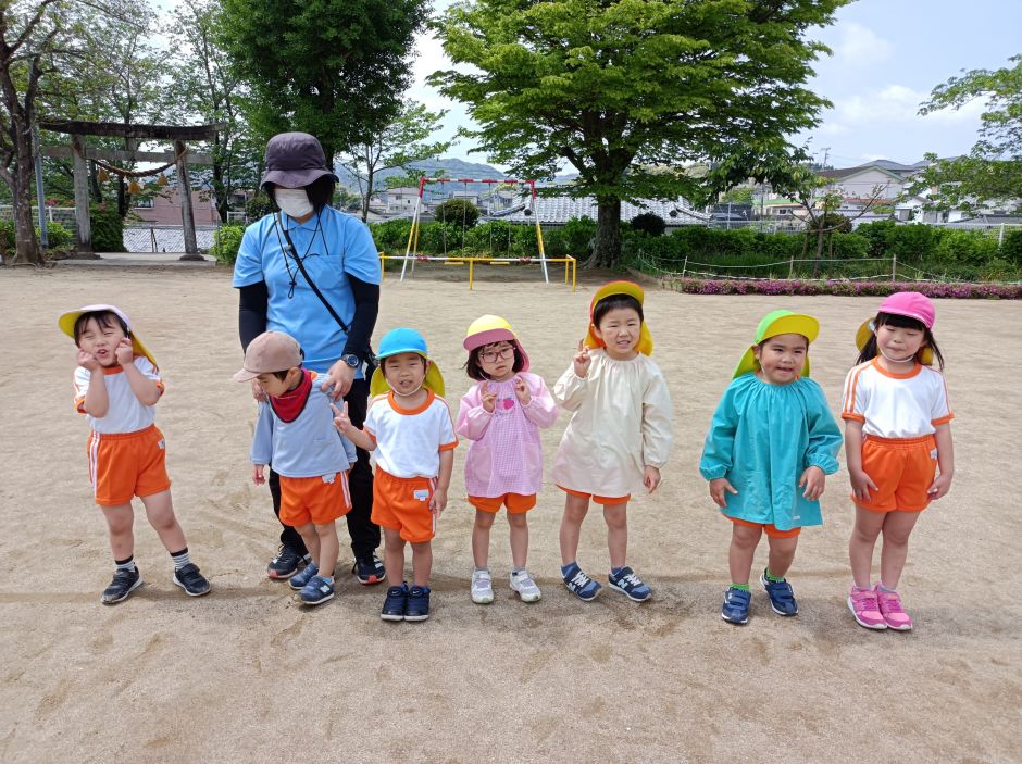 かぜグループさんはみんなで野地公園に行ってきました。公園に着くと、早速追いかけごっこが始まり誰がオニなのかはわからないけど、みんなで走るのが楽しくてずっと走っていた子どもたち。公園で遊具あそびをしたり、お花を探したりそれぞれ、公園遊びを十分に楽しむことが出来ました。