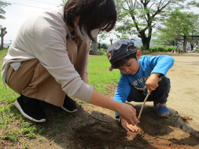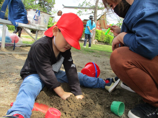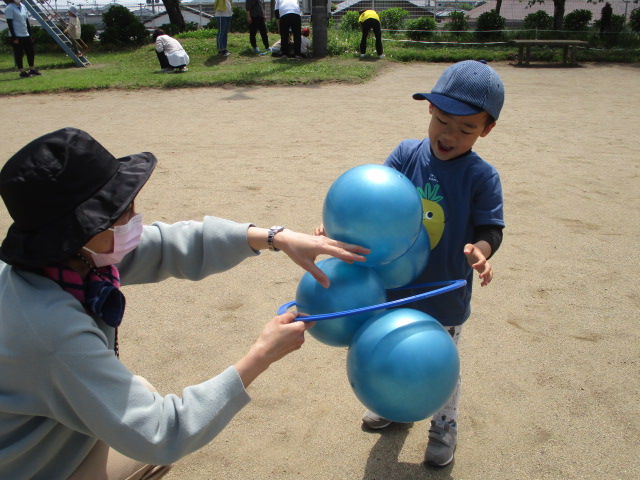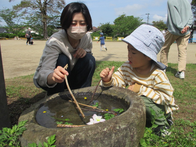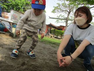 毎週金曜日は母子通園のちょうちょグループ。25日の月曜日はお母さん・お父さんと野地公園に行きました。 朝からおうちの人と一緒でニコニコ笑顔で登園する子どもたち。 用水路から水の流れる音がしたり、木になってる梅や空を飛ぶヘリコプターを見たり、公園までの道のりも面白いことがたくさん見つかりました。 公園ではお母さんお父さんとかけっこや虫探し、シャボン玉など楽しい時間をたくさん過ごすことが出来ました。 また行こうね♪
