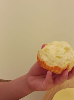 火曜日と金曜日はパンの日。ぷらたなすパン工房の方々がおいしいパンを焼いてくれます。パンの食べ方はみんなそれぞれ。茶色いところから大事に大事に食べて最後はフワフワの部分を唇で引っ張りながら食べます。「おいしいパン。おいしいねぇ。」「おおきいパン。おいしいねぇ。」幸せなひとときです。