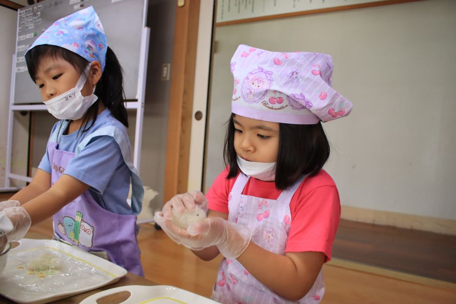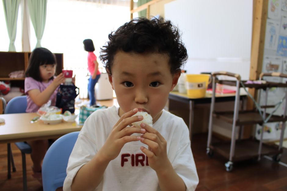 いるかグループは土曜日の活動で、おにぎり作りをしました。自分がお昼に食べるおにぎりということで、「大きいおにぎりがいい」「ふりかけたくさんかける」と楽しみにしながら作る子ども達。自分で作ったおにぎりは、また格別なようで、みんなおいしそうに食べていました。