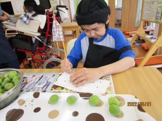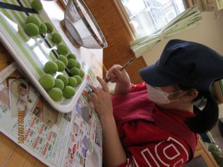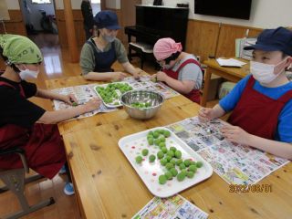 6月1日に活動で梅ジュースを作りました。始めに竹串を使って、梅のヘタをとり全体にグサグサと穴を開けました♪フォークを使って穴を開ける方もいました♪みなさん、それぞれの作業を黙々と進めていました。たくさん準備していた梅も、あっという間になくなりました。最後は瓶の中に梅と氷砂糖まで入れて完成!「早く飲みたいな~」「いつ飲めるんですか」と楽しみにしている方もいました。2週間が経って、梅ジュースも飲み頃になったのでティータイム時間に美味しく頂きました♪