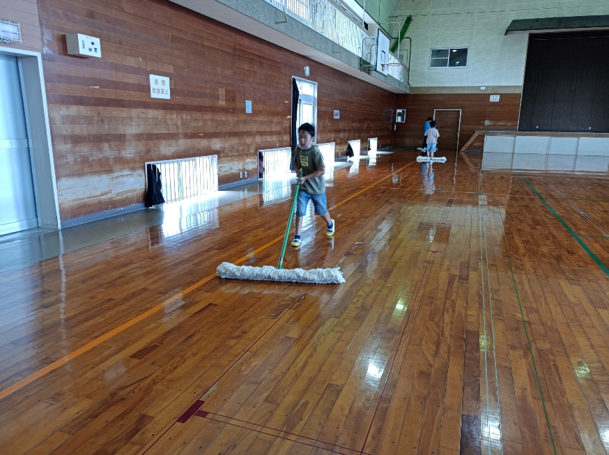 体育館では、まずみんなでハンカチ落としをしました。追いかけられると、当てられたくない思いが大きく近道したり、慌てて逃げるので大回りしたりなど楽しんでいましたよ!自由時間には、バスケット・サッカー・野球・大縄跳び等それぞれがしたい遊びで時間いっぱい楽しみました!使った後は、みんなでモップかけをして帰りました。