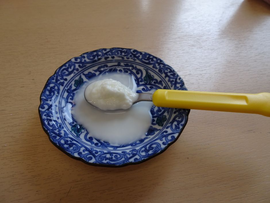 材料は、牛乳、砂糖、氷、塩。材料が入った袋を氷で覆い、タオルで包み、10分間、振り振り、もみもみ…。