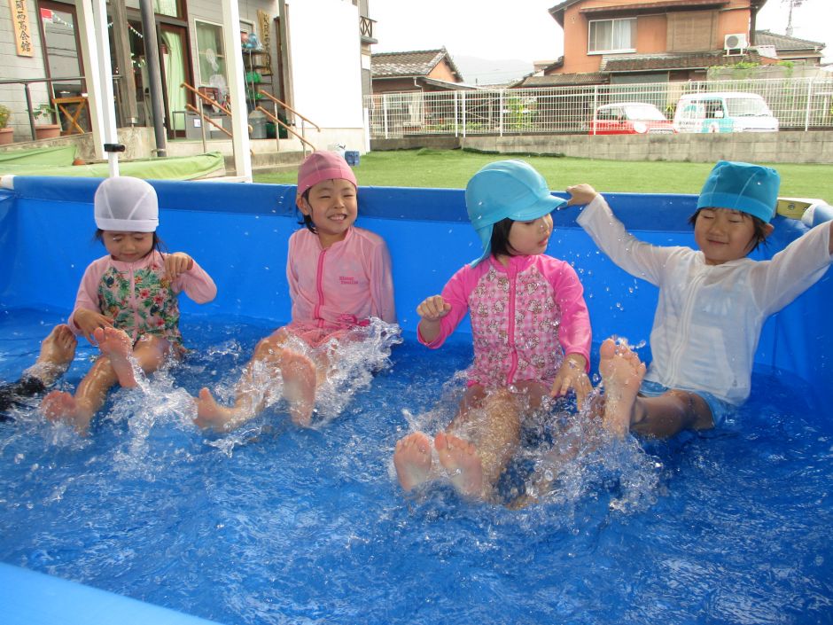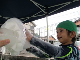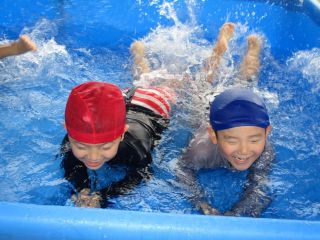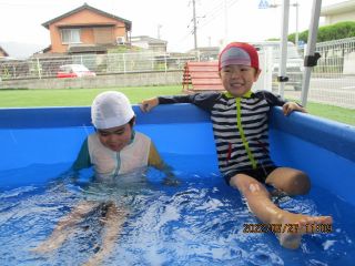 7月から夏のあそびを楽しんでいる子どもたち。水あそびでは、水の掛け合いをしたりバタ足、ワニ歩きに挑戦しています。泡あそびでは泡の感触を全身で味わってあそんでいます。夏のあそびも残り1ヶ月。たくさんあそんで、夏の思い出になるといいです。