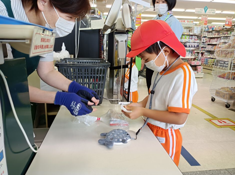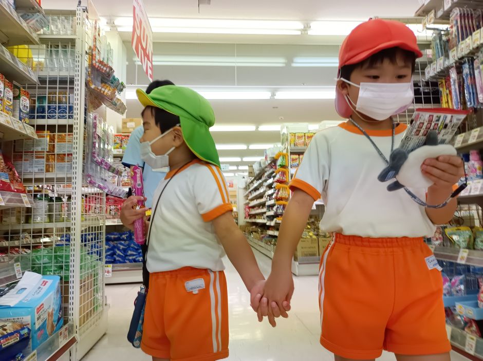 年長児の活動で、お買い物に行ってきました。お菓子コーナーで「どれにしよう!」「あれ?ちがうね?」と、お目当てのお菓子をそれぞれ楽しく探している姿が見られていました。少しドキドキしながらのお会計も、経験のひとつになったかな?おやつタイムでは、とても幸せそうに食べている姿がありました♡