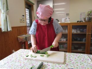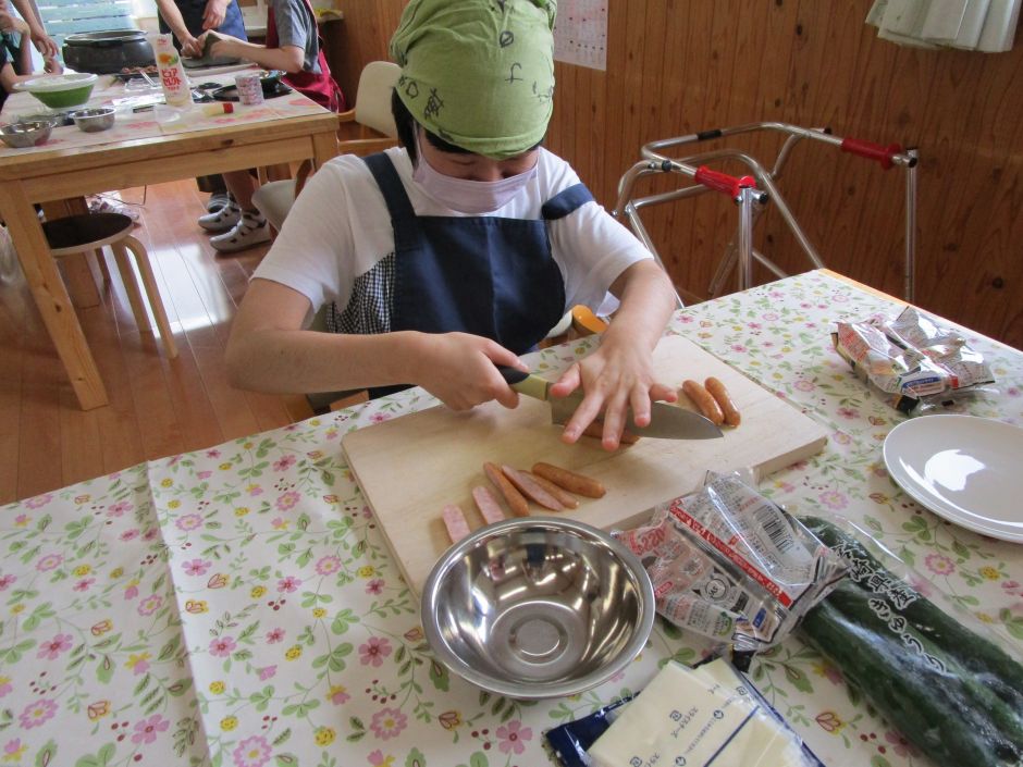 味付きのを肉やウインナーを炒めたり、きゅうりを細く切ったり、レタスをちぎったり、役割り分担で作っていきました。