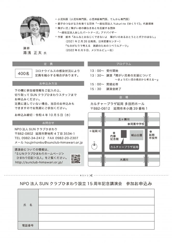 講演会の定員は、まだ席に余裕があります。事前にご予約をお済ませいただけますと、優先的にご案内いただけます。当日の申し込みでも参加できますので、まだ予定が決まっていない方も、是非、ご検討のほどよろしくお願いします。引き続き、講演会の情報はホームページより、随時お知らせいたしますので、ご確認くださいますようお願いいたします。