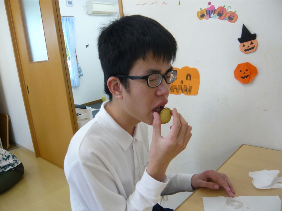 収穫した後は、なかまに戻りふかしイモの試食会。熱々のイモに「あちぃ~。」と言ったり、フーフーと冷まして食べたりしていました。自分たちで収穫したイモは一味違うようで、サツマイモが苦手な子どもも「まだある?、おかわりしたい。」と言うほどでした。