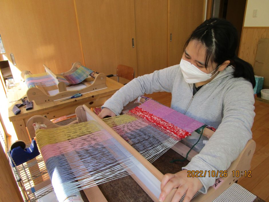 『刺し子』『さをり織り』『紙すき』などの仕事を毎日頑張っています。