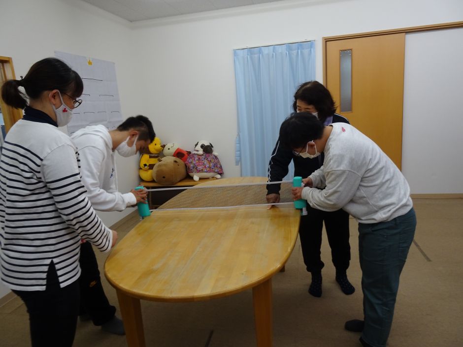 1月の土曜日、あいにくの雨模様のために凧あげから卓球大会へと活動の変更がありました。 サーブ、ラリーの練習後、いざ試合へと! 一部メンバーはこの1週間、卓球に取り組んでいたこともあり、サーブが決まる子、打ち返す子といて、歓声がひと際大きく、盛り上がりました。 これまでの練習の積み重ねを感じるような大会でした。